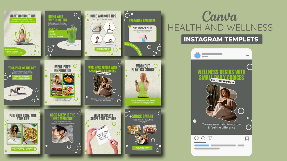 πΏ Health & Wellness Instagram Canva Template Pack